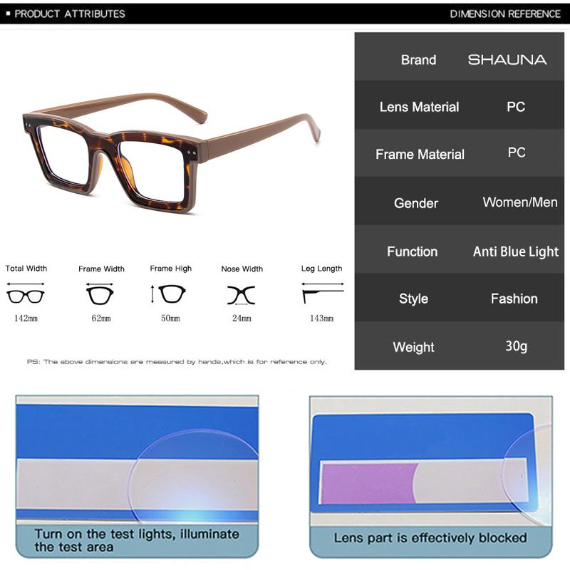 SHAUNA Ins, популярные модные квадратные очки ярких цветов, женская оптическая прозрачная оправа с защитой от синего света, мужские очки с заклепками