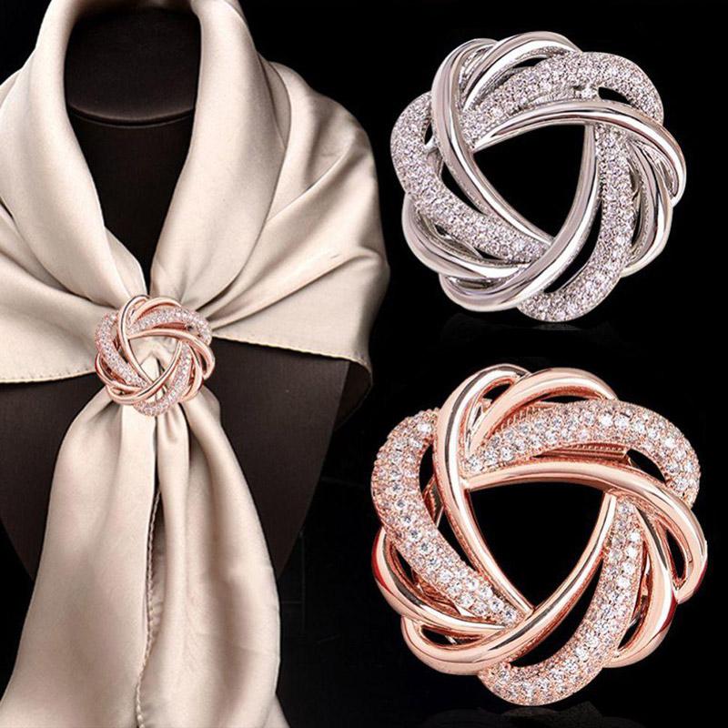 Новая модная винтажная брошь-зажим для шарфа в виде цветка со стразами, хрустальное кольцо для шарфа, женская полая пряжка для шарфа, брошь, ювелирные аксессуары