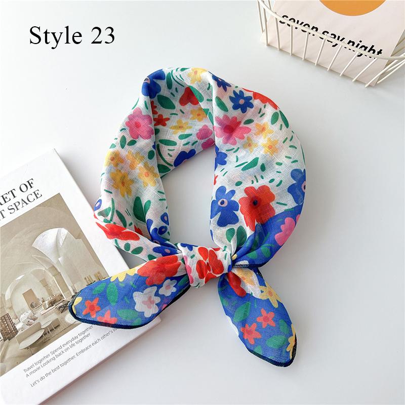 Корейские цветочные печатные головные платки женские банданы с цветочным узором летний шарф хлопковый квадратный воротничок шаль повязка на голову шейный платок