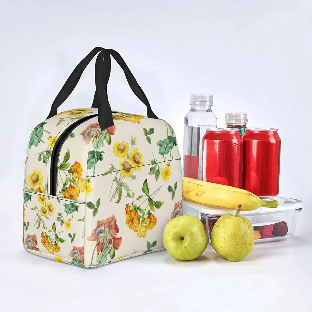 Термосумка для ланча Цветочная Термоизолированная Ланч-бокс Холодильник Термическая Водонепроницаемая Многоразовая Сумка-тоут для Путешествий Работы Пеших Прогулок Пикника