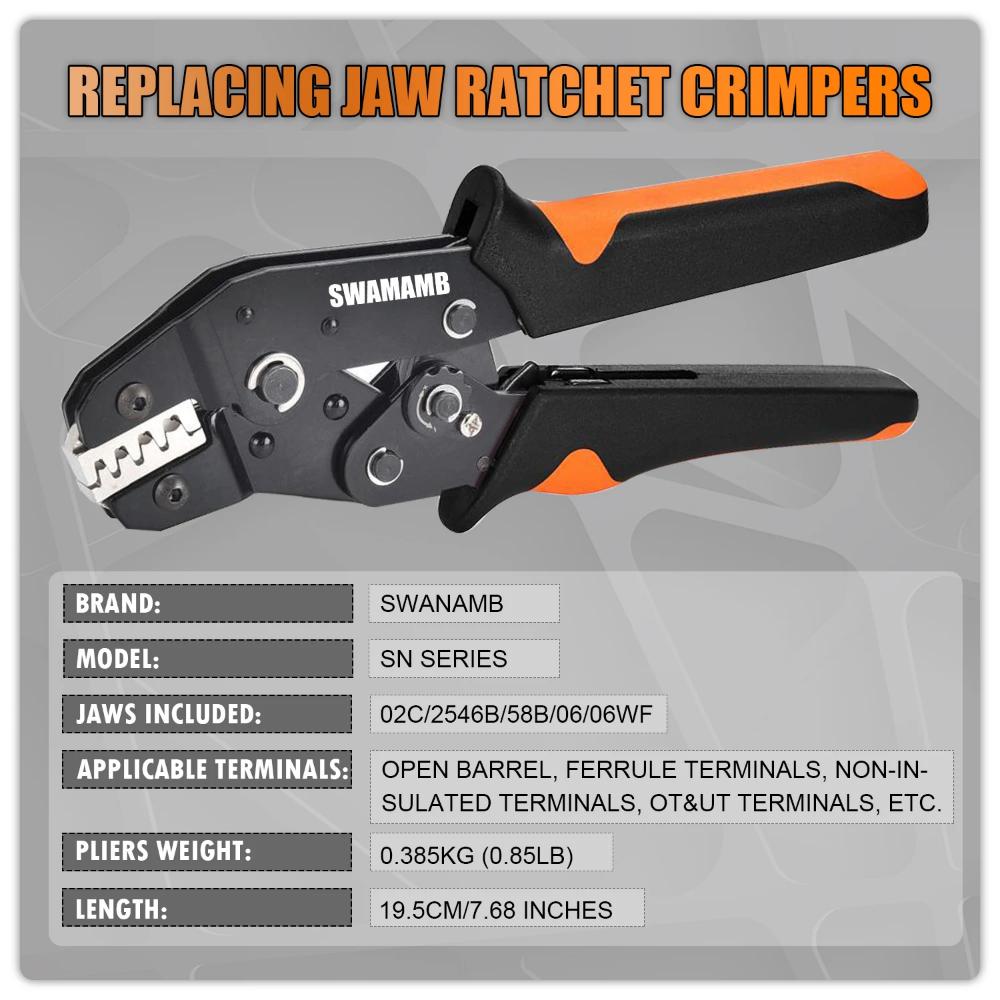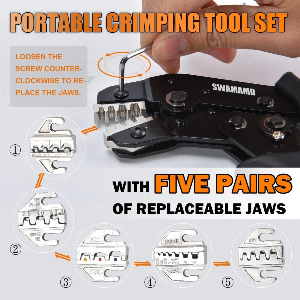 Набор сменных губок для обжимного инструмента с храповым механизмом, набор для обслуживания автомобилей, обжимные клещи для неизолированных/открытых гильз/разъемов