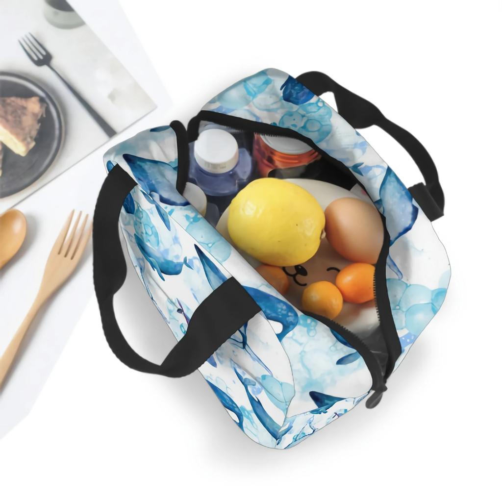 Сумка для ланча Wildlife Big Blue Whales Сумка-тоут для взрослых Многоразовый контейнер для ланча для женщин, мужчин, школы, офиса, работы