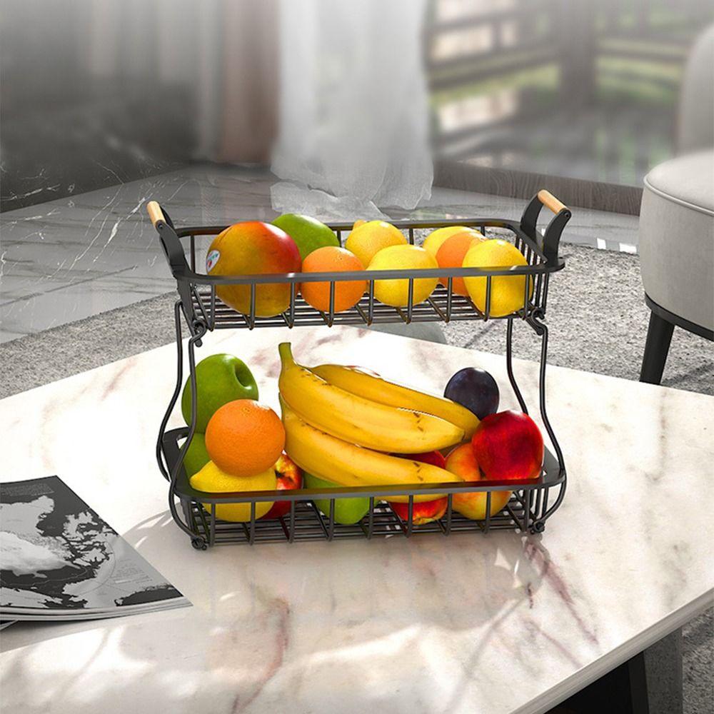 Металлическая корзина для фруктов, чаша, 2 уровня, подставка для хранения закусок, прочная корзина для овощей и хлеба, ванная комната