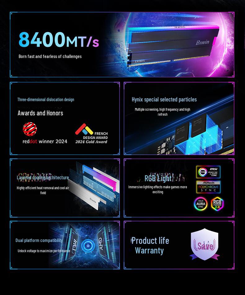 BIWIN DW100 DDR5 Настольная память 32 ГБ (16 ГБ×2) 6000/6400 МГц со световой панелью