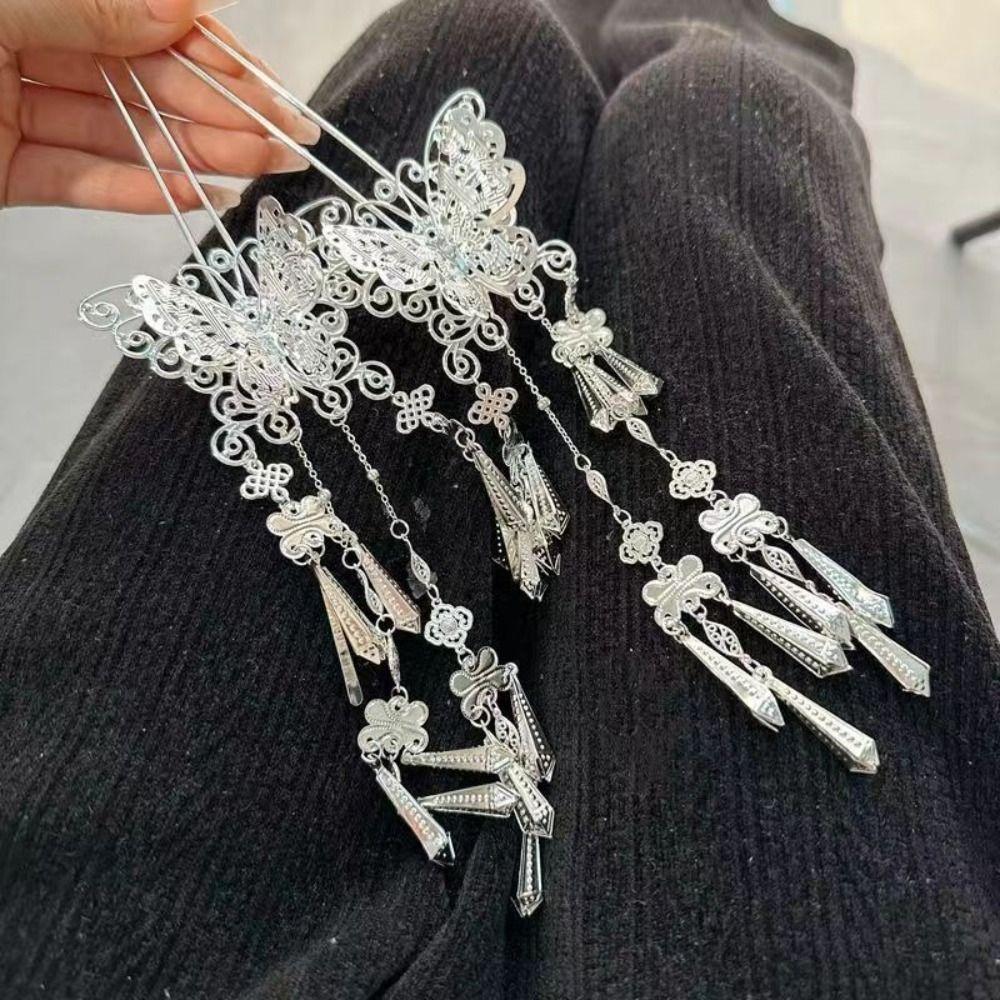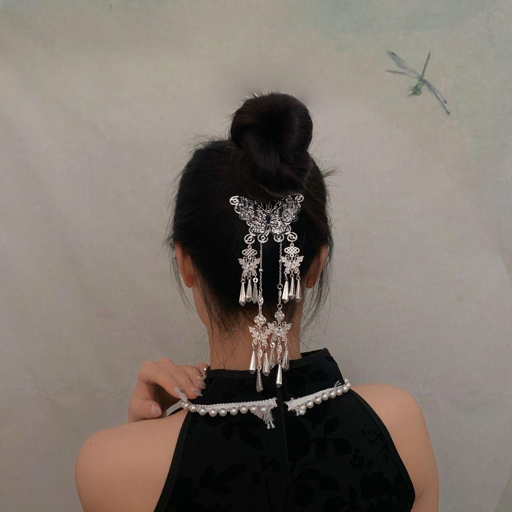 Металлический этнический стиль головной убор Древний ханьфу палочки для волос бабочка кисточка заколка костюм головной убор