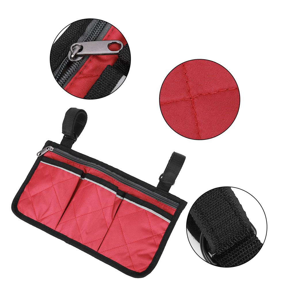 1 x Сумка для инвалидной коляскиСумка для хранения на подлокотнике инвалидной коляски, многокарманная конструкция, можно сортировать для хранения вещей, выглядит аккуратно и чисто.