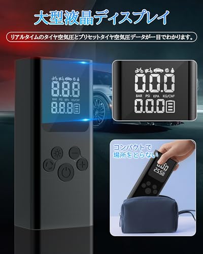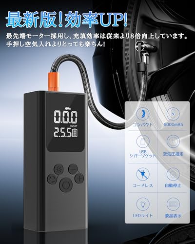 Электрический воздушный насос, Перезаряжаемый, 6000 мАч, Автомобильный воздушный насос, Беспроводной, Воздушный насос, Мотоцикл, Воздушный компрессор, Максимальное давление 150 фунтов на квадратный дюйм, Зарядка Type-C,