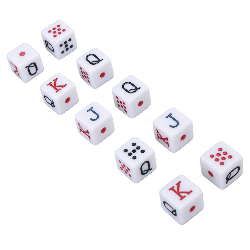 10 x игральных кубиковУникальные узоры: Имеет четкий рисунок JQK и точек, плоские поверхности без грубых или режущих краев или зазубрин.. Легко и безопасно играть, прочно пригоден для длительного использования.