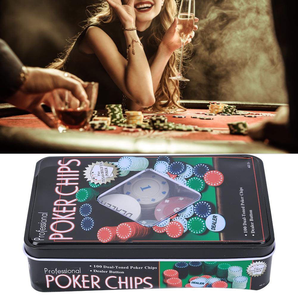 100 шт. покерные фишки для карт с дилерским чипом, портативный футляр для переноски для детей и взрослых