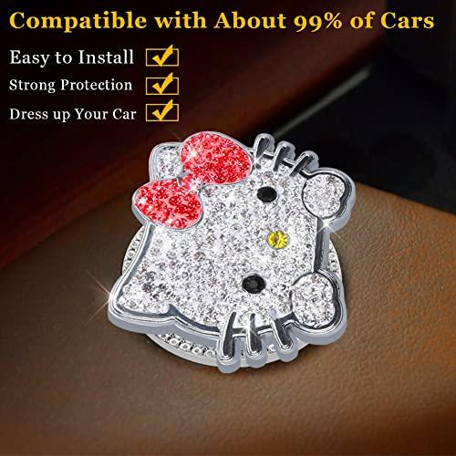 YOLRIND Car Push Start Button Cover, Cute Cat Glitter Car Accessories for Women Engine Push to Start Button Cover Interior Accessories Decoration