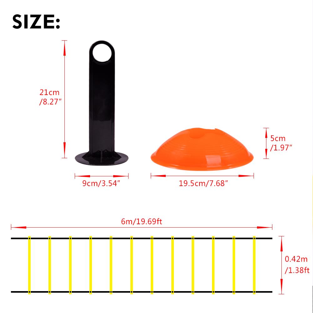 Ступени плоские и легко регулируются, так что расстояние между лестницами можно регулировать для удовлетворения широкого диапазона потребностей в скоростных тренировках. Дисковые конусы, делающие различные скоростные упражнения, делают эту футбольную лестницу ловкости подходящей для всех видов спорта.