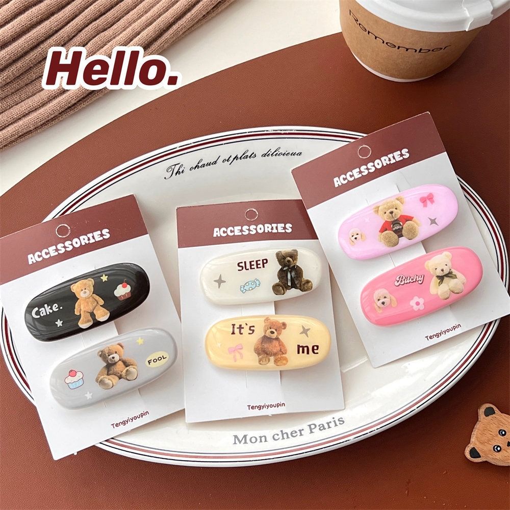 Printed Cute Hair Clip Letter Bear Hairpin Simple Daily
