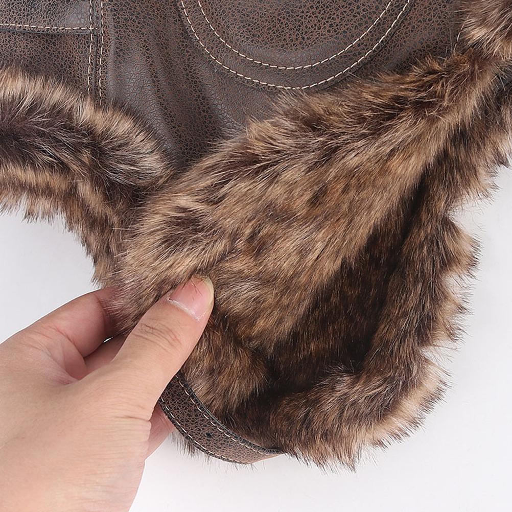 Мужская зимняя ПУ кожаная теплая ветрозащитная шапка Lei Feng для защиты ушей и лыж для походов и