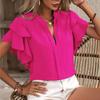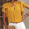 Элегантная блузка-пуловер женская летняя новая повседневная двухслойная рубашка с оборками на рукавах однотонного цвета — купить товар онлайн с бесплатной доставкой по всему миру!