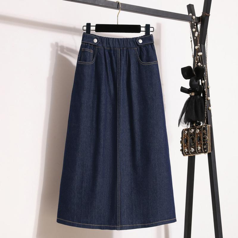 Women Summer Plus Size Solid Elastic Denim A-Line Skirts Elegant Blue Vintage Half-body Skirt — купить товар онлайн с бесплатной доставкой по всему миру!