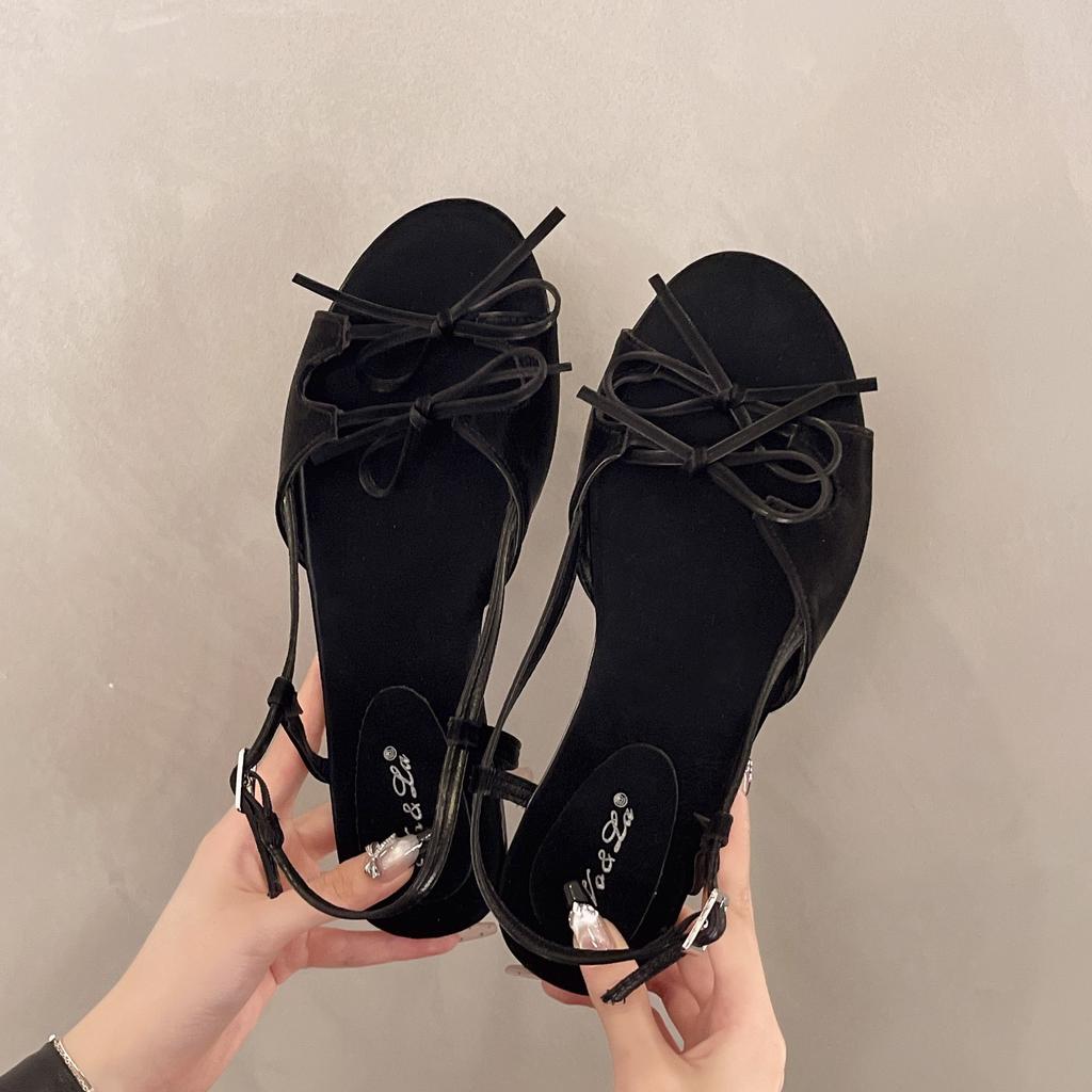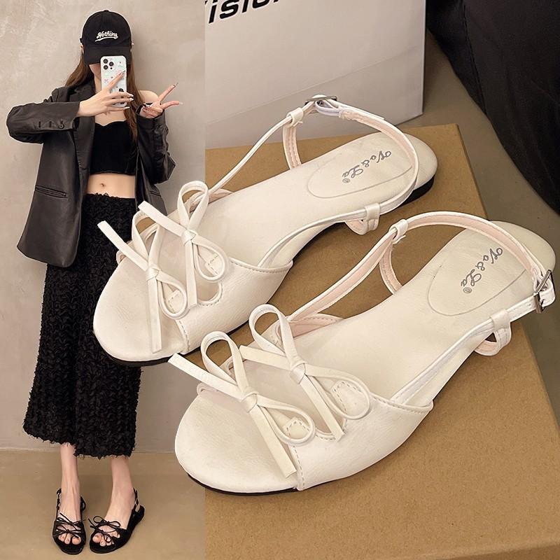 Французские женские сандалии с открытым носком, новый дизайн, плоский бант, римский стиль, мода, сто, удобная обувь для пляжа, повседневная обувь