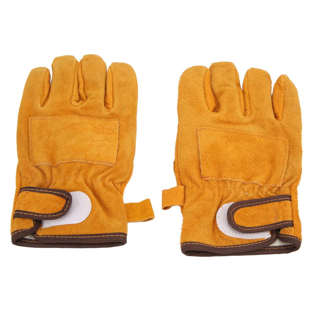 Термостойкие перчатки из телячьей кожи, полиэстера, защита рук, прихватки для гриля и барбекю, короткие, желтого цвета