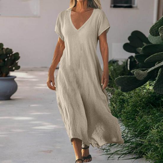 Элегантный дизайн: Подчеркните свой стиль с помощью этого однотонного женского платья из хлопкового льна, которое без труда подчеркнет вашу элегантность и модность.
