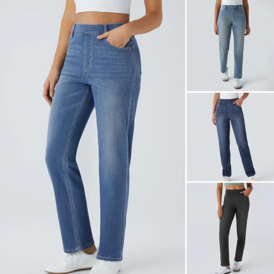 Женские прямые джинсы с высокой талией, укороченные джинсовые брюки, эластичные до щиколотки — купить товар онлайн с бесплатной доставкой по всему миру!
