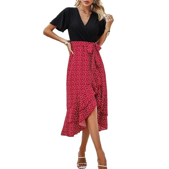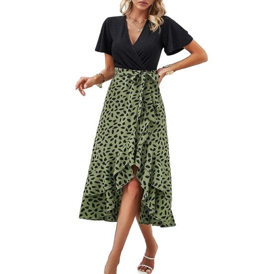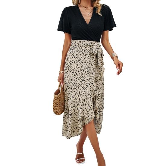 Элегантное и универсальное женское платье: Украсьте свой гардероб этим стильным платьем с короткими рукавами и струящимся подолом.. Облегающий крой подчеркивает вашу фигуру, создавая эффект похудения.. Изготовленное из высококачественной полиэфирной ткани, это платье удобное и прочное, что гарантирует длительный срок службы.. Это платье идеально подходит для повседневного ношения или офиса и прекрасно дополняет любую фигуру..
