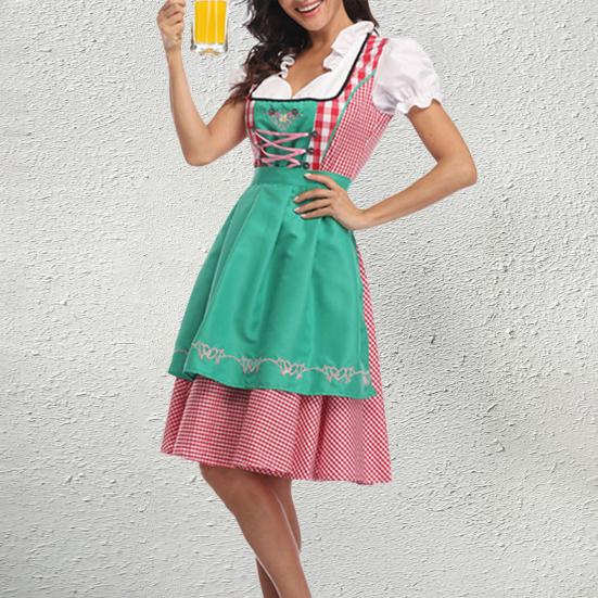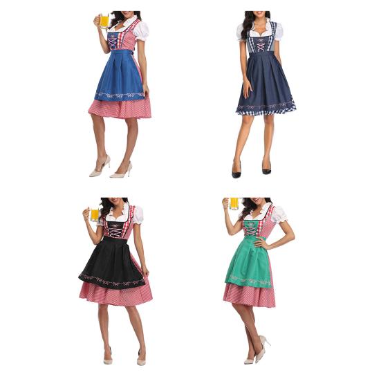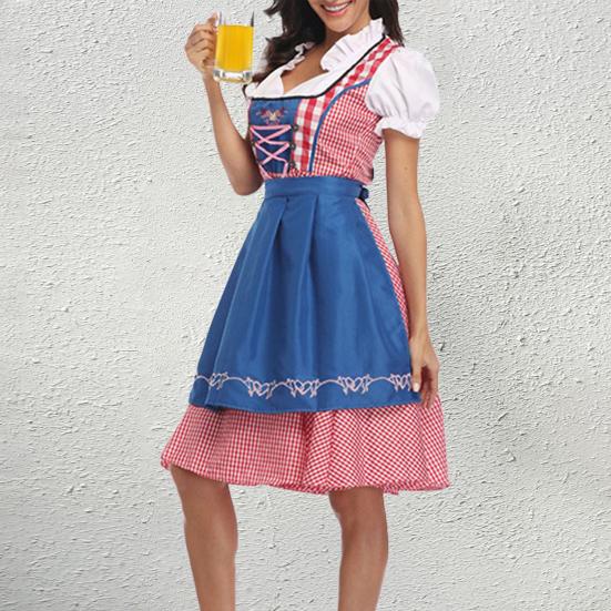 Женский клетчатый костюм Октоберфеста, немецкое платье дирндль, традиционные баварские наряды на Хэллоуин