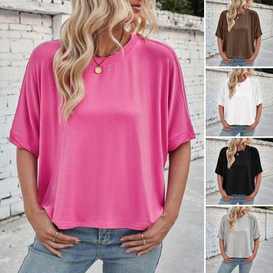 Улучшите свой повседневный гардероб этой шикарной женской футболкой.. Эта однотонная футболка, изготовленная из приятного для кожи и удобного полиэфирного волокна, имеет стильный дизайн с короткими рукавами и рукавами «летучая мышь» для дополнительного комфорта..