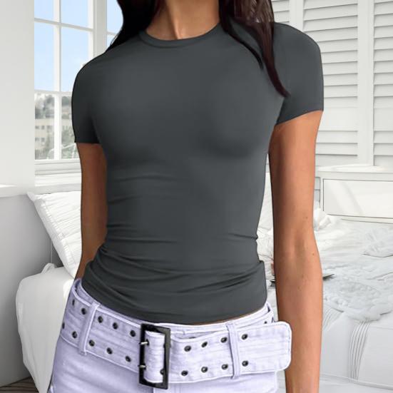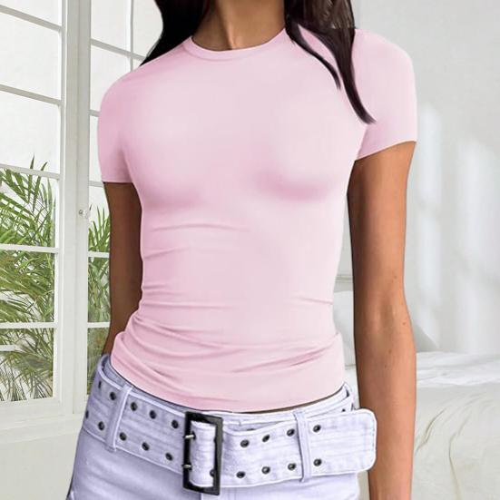 Женская футболка изготовлена из высококачественного полиэстера, обеспечивающего легкость, воздухопроницаемость и естественность.. Однотонный цвет и круглый вырез делают его модным и универсальным..