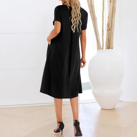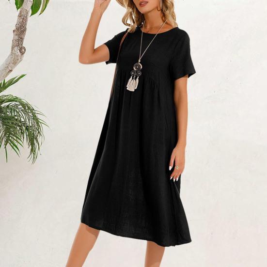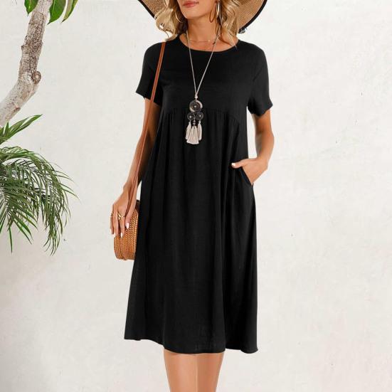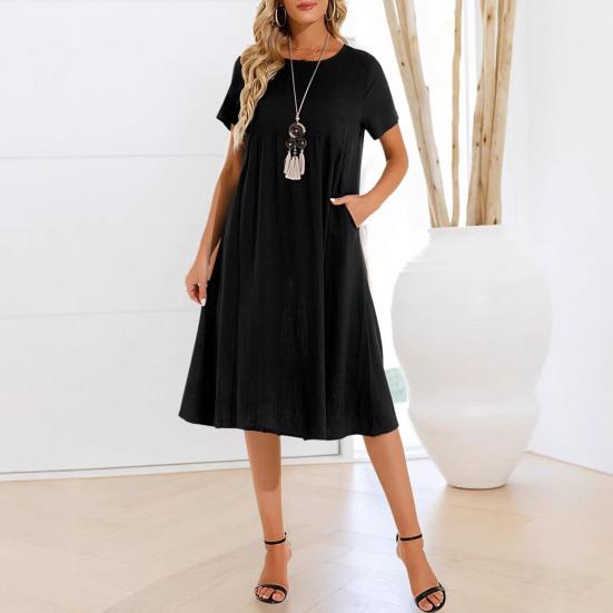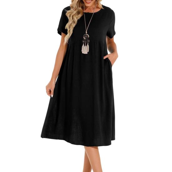 Универсальные варианты укладки: Легко сочетайте это однотонное платье с изысканными аксессуарами, такими как ожерелья, браслеты или плетеные сумки.. Легко переходите от повседневного ношения к офисному наряду, образу для отпуска или шикарной вечеринки.