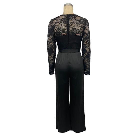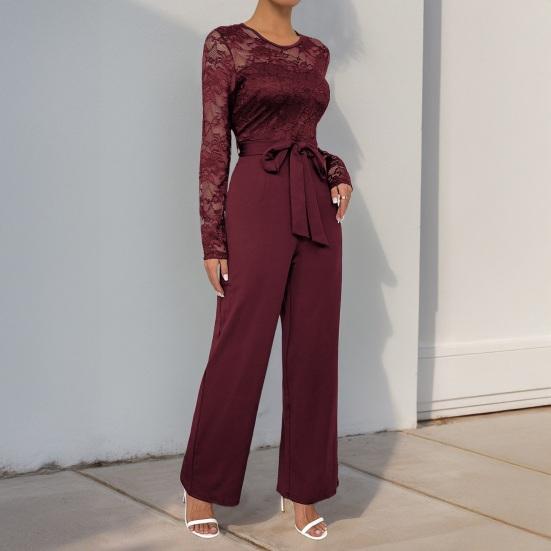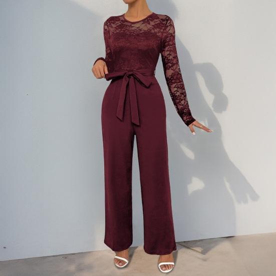 Элегантность в стиле casual: Создайте повседневный, но в то же время шикарный образ с этим женским комбинезоном с круглым вырезом и однотонными кружевными вставками.. Его простота излучает элегантность, что делает его универсальным дополнением к вашему гардеробу для различных случаев.
