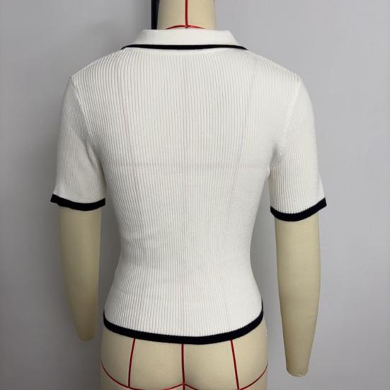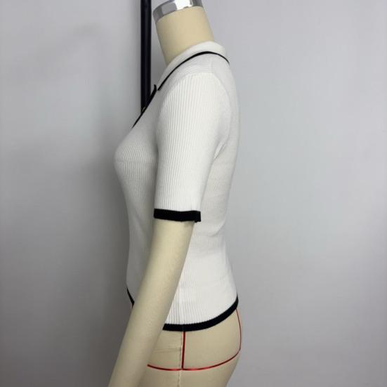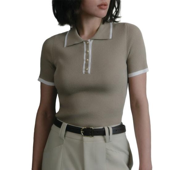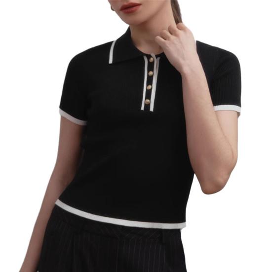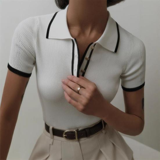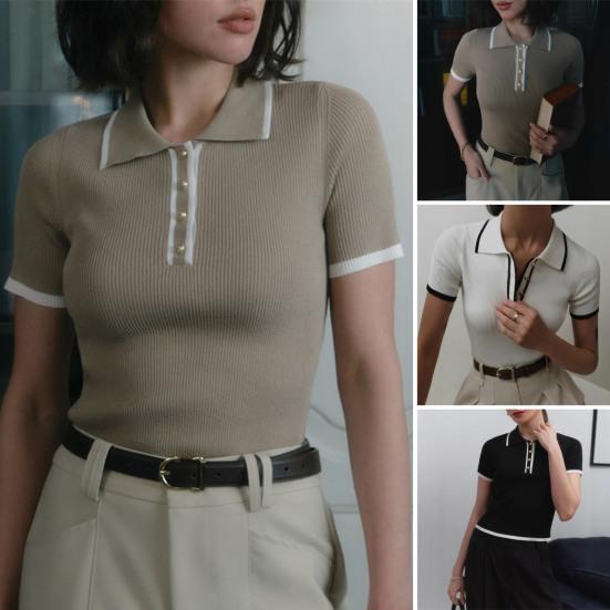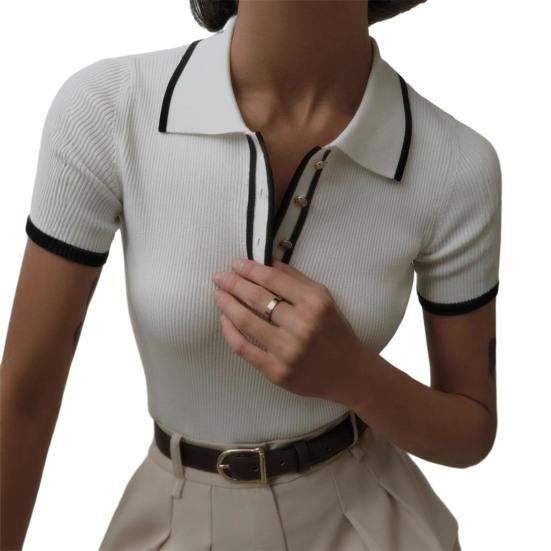 Стильный лацкан и застегивающийся на пуговицы вырез горловины: Этот топ с короткими рукавами и застегивающимся на пуговицы вырезом горловины излучает изысканность и добавляет элегантности вашему образу.