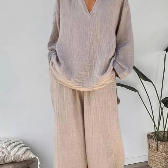 Этот стильный комплект из двух предметов изготовлен из дышащей и легкой полиэфирной ткани, обеспечивающей комфорт и стиль весной, летом и осенью.. Свободный крой не только подчеркивает ваш силуэт, но и обеспечивает максимальный комфорт при ношении в течение всего дня.. Однотонный ансамбль универсален и подходит для людей разного типа телосложения и возраста..