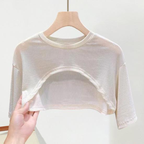 Универсальный дизайн круглой горловины: Эта женская рубашка с классическим круглым вырезом и короткими рукавами предлагает классический стиль, подходящий для разных случаев.. Конструкция пуловера обеспечивает удобство ношения, что делает его удобным выбором для повседневного использования.