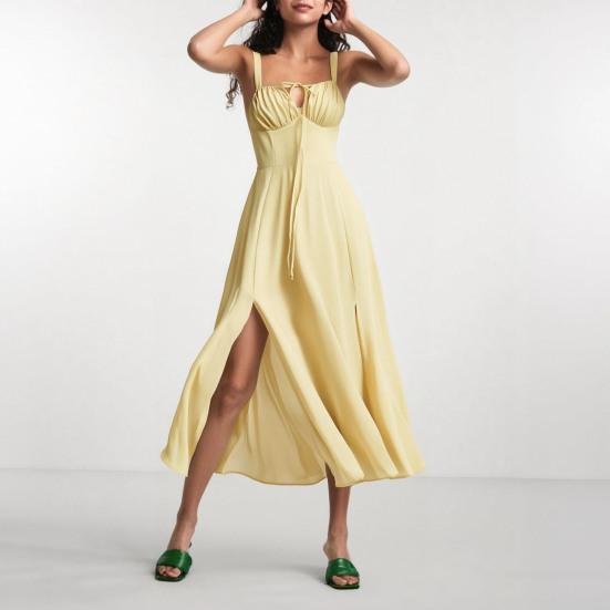 Привлекательный дизайн корсета: Корсет и регулируемый шнурок на высокой талии подчеркивают ваш силуэт, а разрез спереди обеспечивает свободу движений и изысканный вид ног.. Регулируемые ремни позволяют подобрать индивидуальную модель для комфорта в течение всего дня.