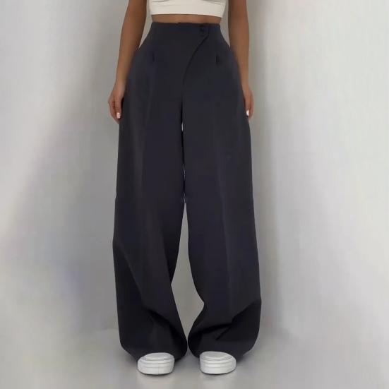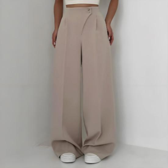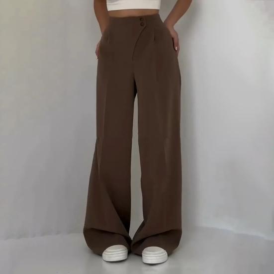 Улучшите свой гардероб с помощью этих универсальных женских костюмных брюк.. Эти прямые брюки, изготовленные из высококачественной полиэфирной ткани, имеют привлекательную высокую талию и свободный крой для комфорта в течение всего дня..