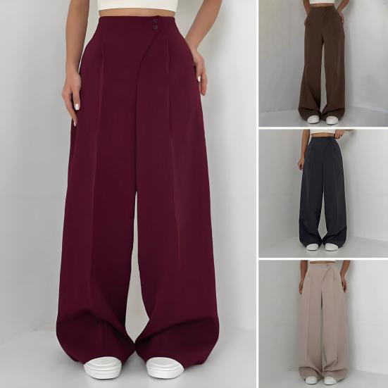 Стиль Chic OL Commuter: Создайте шикарный стиль OL для поездок на работу с этими однотонными брюками, которые могут похвастаться элегантным и универсальным дизайном.. Широкий силуэт добавит вашему образу нотку изысканности, что делает их идеальными для создания модных ансамблей для работы или отдыха.