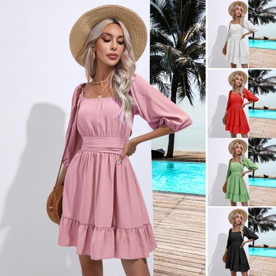 Привлекательный квадратный воротник, приталенный на талии: Почувствуйте уверенность в себе в однотонном платье с квадратным воротником, застегивающимся на талии, которое подчеркивает вашу фигуру, создавая стройнящий силуэт.