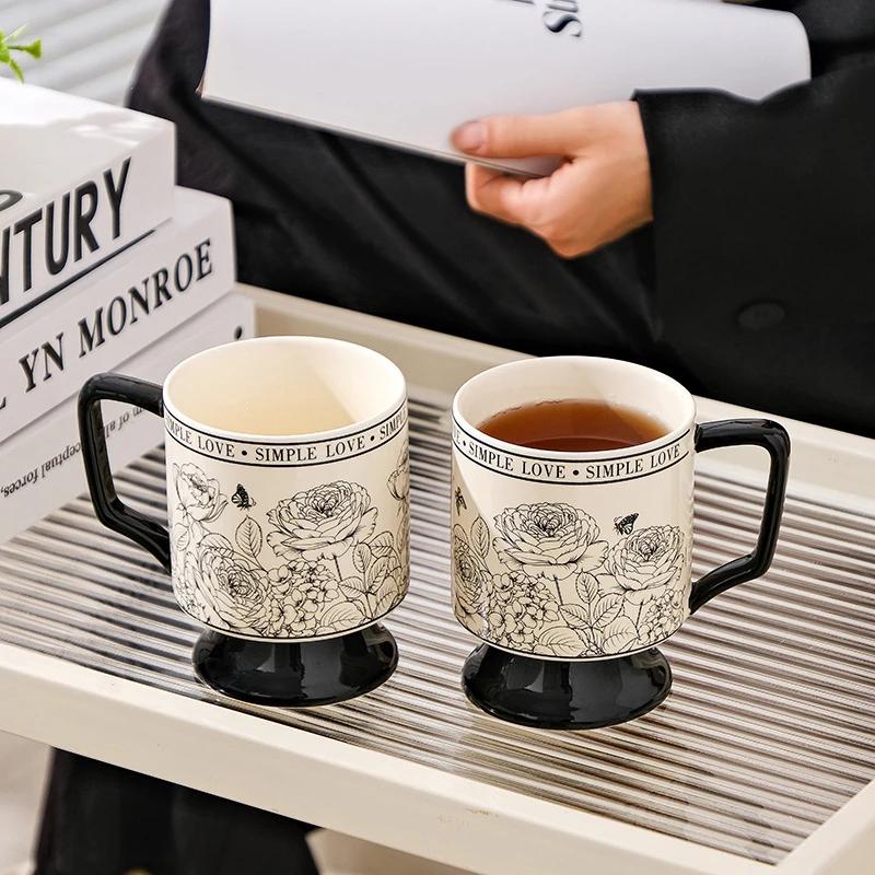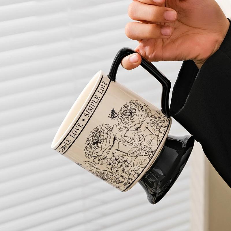 Креативная винтажная керамическая чашка с ручкой, термостойкая кофейная кружка с розовым узором, высокая чайная чашка для рождественских подарков