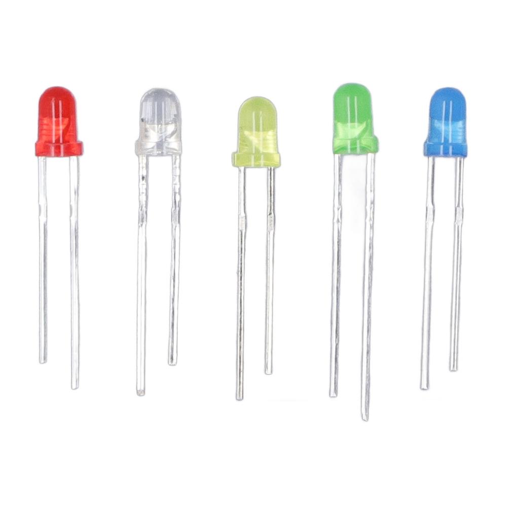 1. [Всего 500 шт.] Этот набор светодиодов содержит в общей сложности 500 диодов 5 цветов: белый, зеленый, красный, желтый, синий и по 100 шт. каждого цвета.. Этого количества хватит на ежедневные нужды.