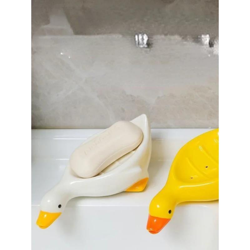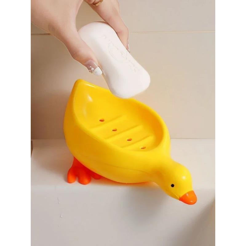 Мыльница в форме желтого утенка с дренажем, милый мультяшный держатель для мыла, пластиковый контейнер для мыла, поднос для мыла, аксессуары для ванной