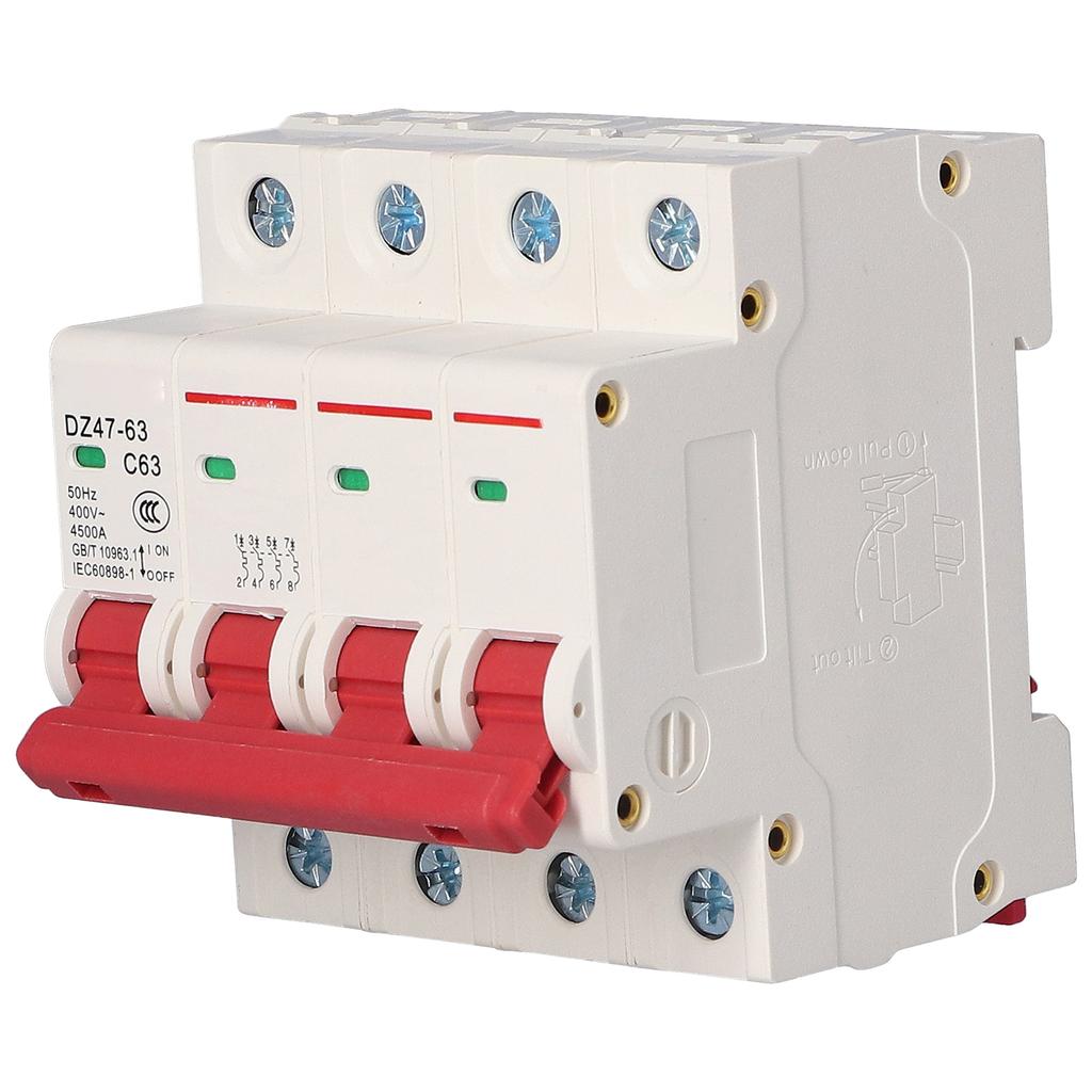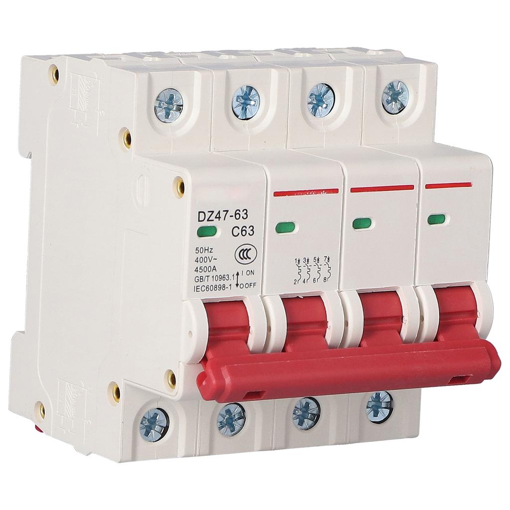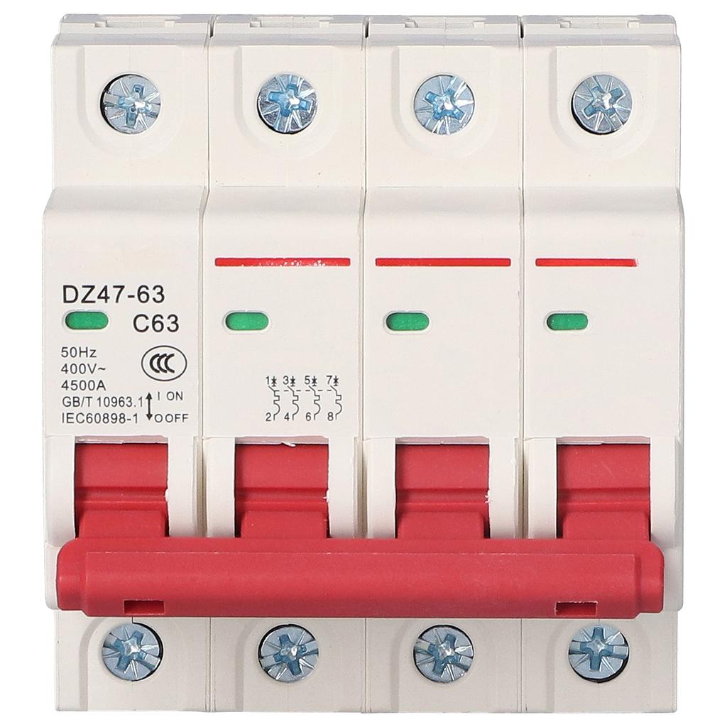 Автоматический выключатель 4P, миниатюрный воздушный выключатель MCB, защита от перегрузки и короткого замыкания, 400 В, для бытового использования, 63 А
