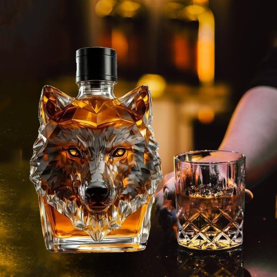 Дизайн крана «Голова волка»: Сделайте смелое заявление с помощью эффектного графина в виде головы волка/крана, который добавит нотку изысканности любому бару или частному пространству.. Тщательно протравленные вручную детали подчеркивают сложную текстуру волчьей шерсти, а пробка для бутылки служит стильным завершающим штрихом и идеально подходит для подарка или личного использования.
