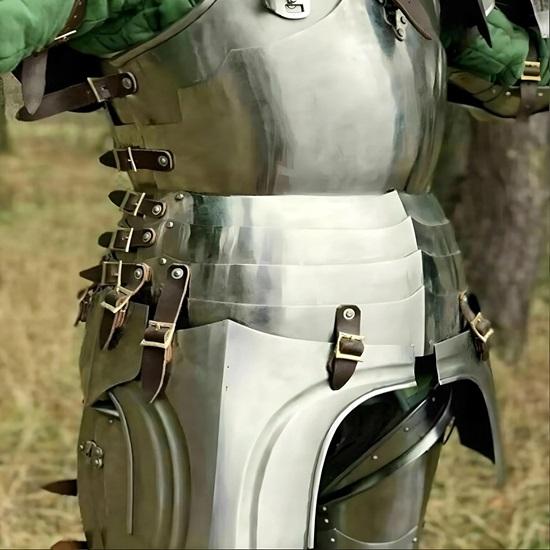 Этот эпический доспех крестоносца — больше, чем просто костюм. Это шедевр средневекового инженерного искусства.. Конструкция из 18-калибровой стали обеспечивает идеальный баланс между аутентичностью и практичностью, предлагая прочность без ущерба для мобильности.. Регулируемые кожаные ремешки позволяют подогнать посадку для длительного ношения, а полированная отделка имитирует царственный вид закаленного в боях рыцаря.