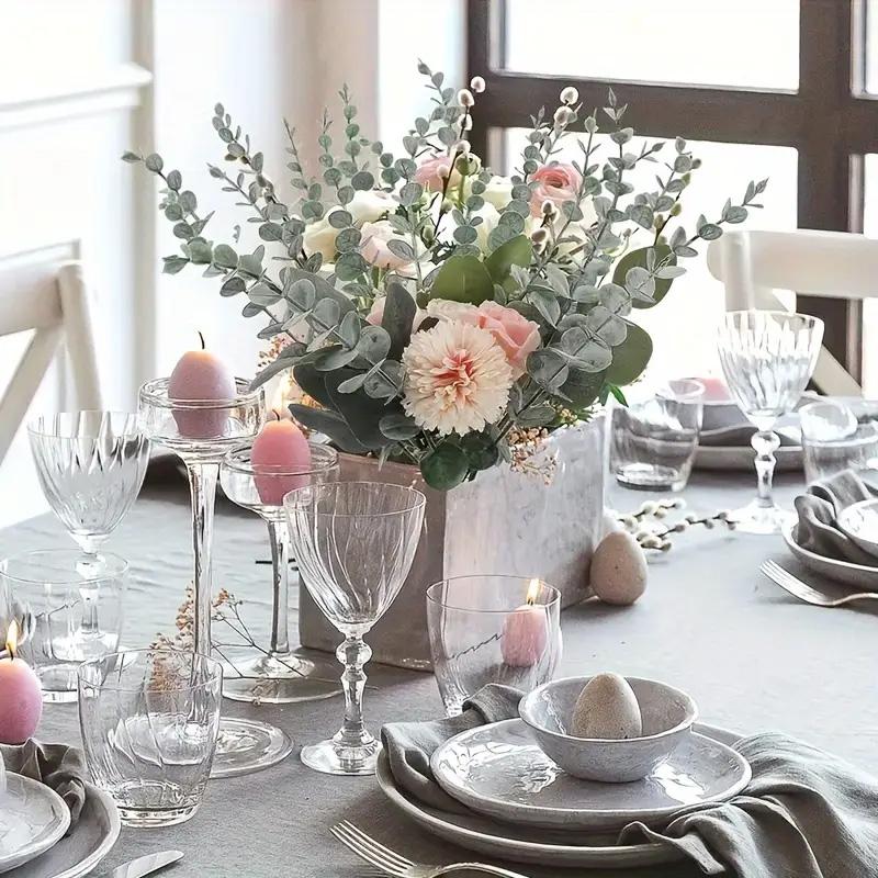 Высококачественные материалы: Листья искусственного эвкалипта изготовлены из высококачественного пластика, который является безопасным и экологически чистым. Цветонос с металлической проволокой внутри изготовлен методом литья под давлением из нового экологически чистого пластика, гладкий и нежный, его можно сгибать или обрезать по желанию.