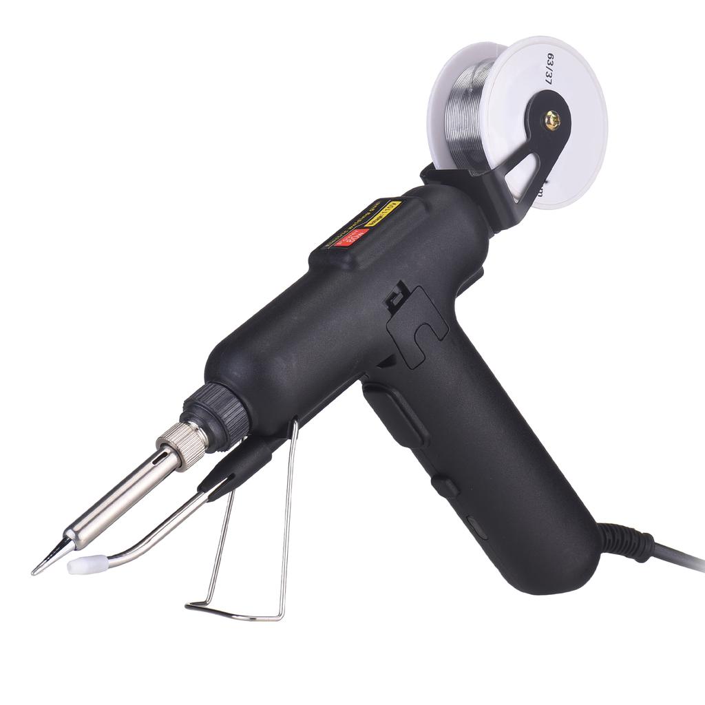 При загрузке припоя сначала нажмите овальную кнопку на боковой стороне паяльника, чтобы подать проволоку в трубку с припоем.. Затем нажмите на курок, чтобы пистолет начал работать плавно и эффективно. Быстрый нагрев и эффективность. Достигает оптимальной температуры всего за 10 секунд благодаря наконечнику из сплава и керамическому нагревателю, ускоряя выполнение задач пайки без задержек.