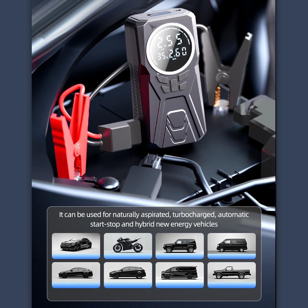 1. Портативный автомобильный стартер: Немедленный запуск вашего 12-вольтового автомобиля, даже с поддержкой более 1000 циклов зарядки при температуре от 20 до 60 градусов Цельсия . Оснащен интеллектуальным зажимом для защиты от переворачивания и точного портативного использования.