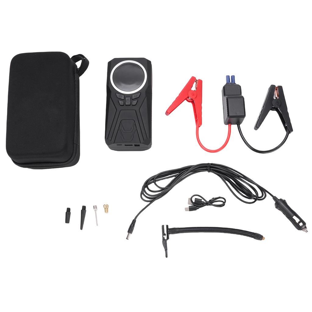 3. Многофункциональный внешний аккумулятор: Сочетает в себе 6 практичных функций, включая пусковое устройство для автомобиля, воздушный компрессор, освещение, аварийный сигнал SOS и 2 порта быстрого вывода для зарядки электронных устройств.. Светодиодный фонарь с 3 режимами (нормальный, стробоскоп, SOS). Отлично подходит для экстренных ситуаций.