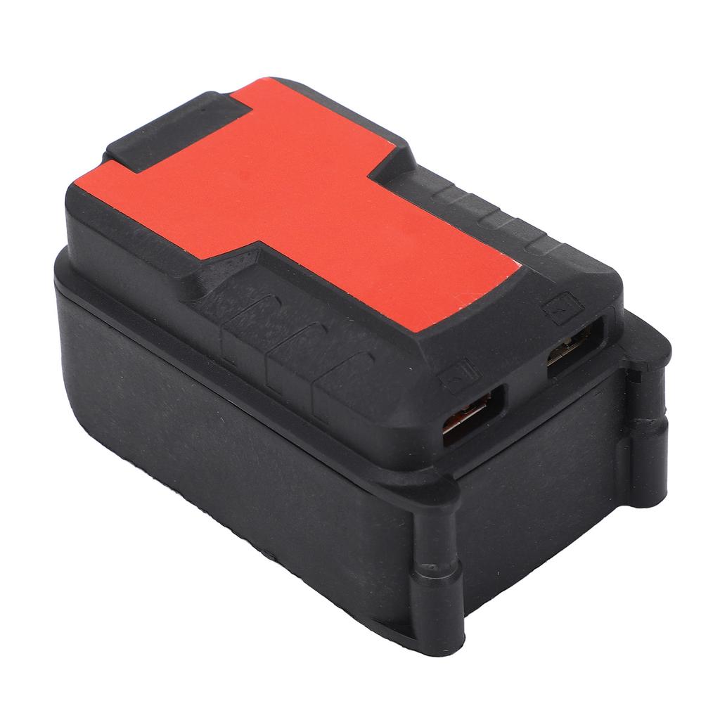 Двойные USB-порты: Этот адаптер для зарядки аккумулятора электроинструмента оснащен двумя выходными портами USB, включая порт быстрой зарядки, для эффективного питания нескольких устройств одновременно, практичен и удобен.