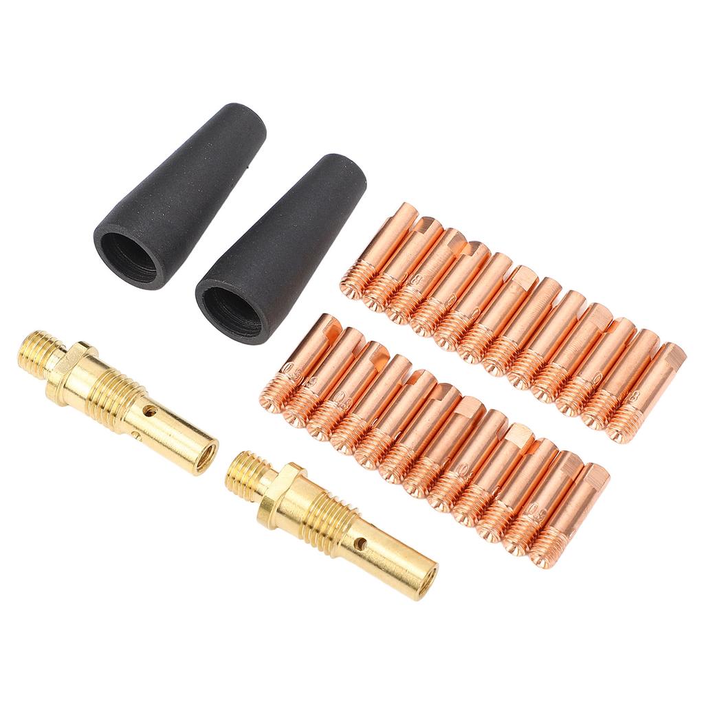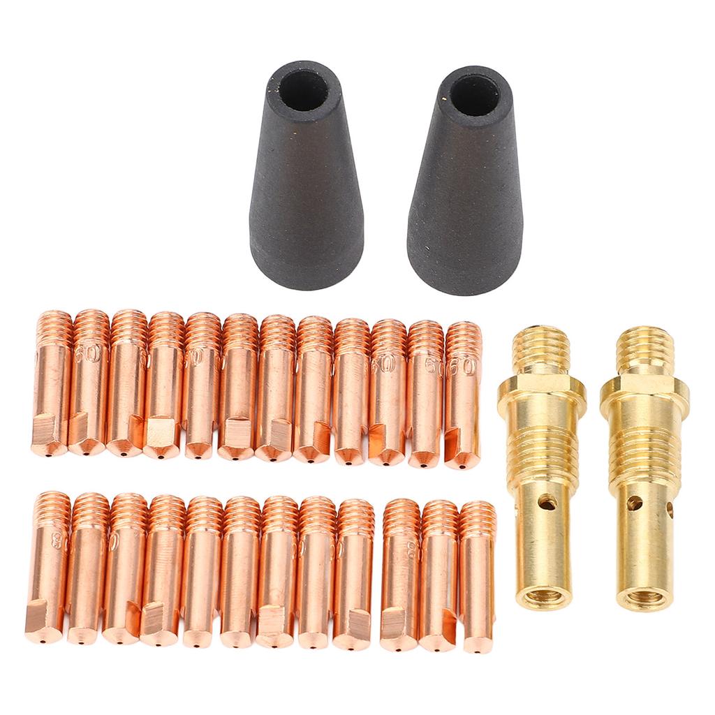 Внимательно проверьте размер деталей, чтобы убедиться, что они подходят вашему сварочному аппарату. [Сварочный комплект MIG] Включает 12 сварочных наконечников 0,035 дюйма, 12 сварочных наконечников 0,031 дюйма, 2 сопла с флюсовым сердечником для безгазовой сварки и 2 газовых диффузора, что соответствует вашим различным потребностям.