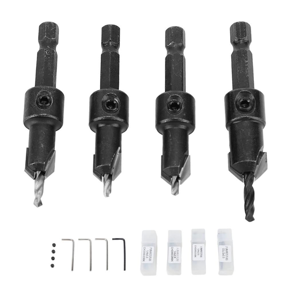 4 x Зенковочное сверло4 x Шестигранный ключ 4 x Винт 4 x Картридж для хранения ЧИСТОЕ ПРОИЗВОДСТВО: Зенковочное сверло может создавать отличные зенкованные отверстия для винтов с плоской головкой и винтов с головкой-пробкой, без необходимости раскалывать древесину, и наслаждаться чистой инженерией с набором сверл.