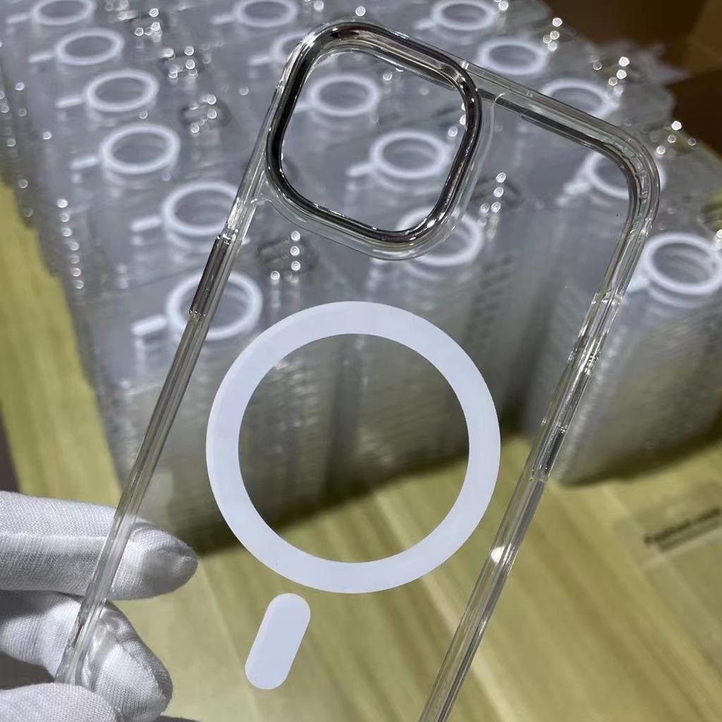 Применимо к iPhone15 с металлической рамкой Прозрачный чехол с магнитной фиксацией Apple 13 Большое отверстие Противоударный защитный чехол